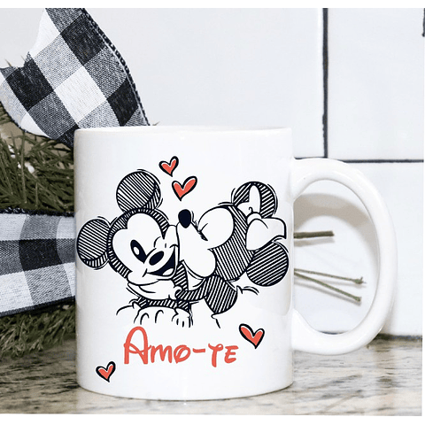 Simples e elegantes canecas em cerâmica branca com desenho de Minnie e Mickey
